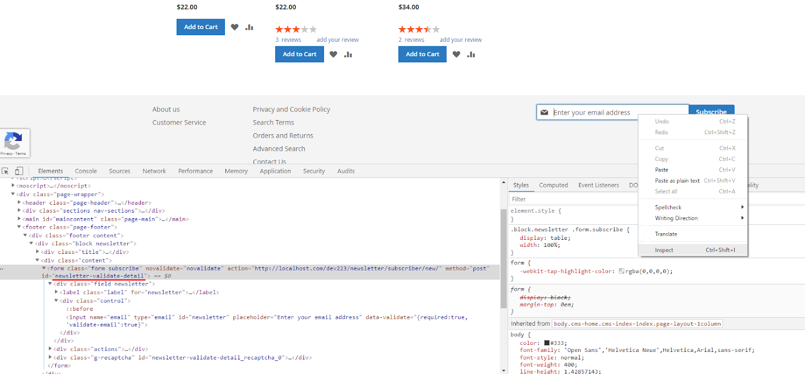 - You need to take CSS Selector of the form. At our example, we will take ID of the form. For example: #newsletter-validate-detail, display reCAPTCHA in the Subscriber