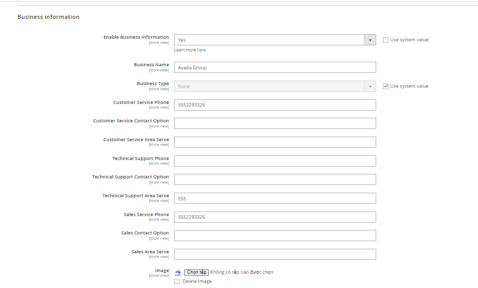 In the Enable Business Information field: Select "Yes" to display information about your business in the search result. The system will then display more fields: