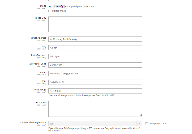 - Then, provide some information about your business, including Street Address, City, State/Province, Zip/Postal Code, Email, Fax, Price Range, Description.
