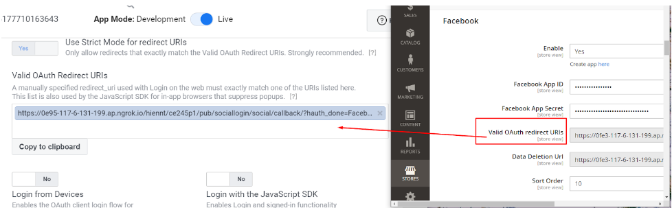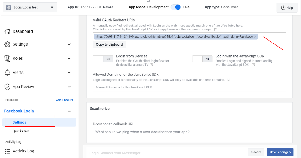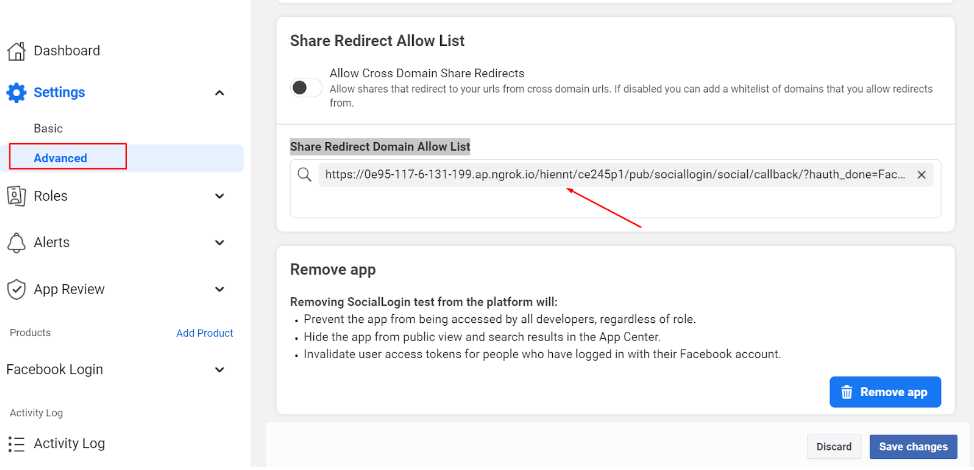 On the Advanced page, get the Valid OAuth redirect URLs from our Social Login settings in the backend