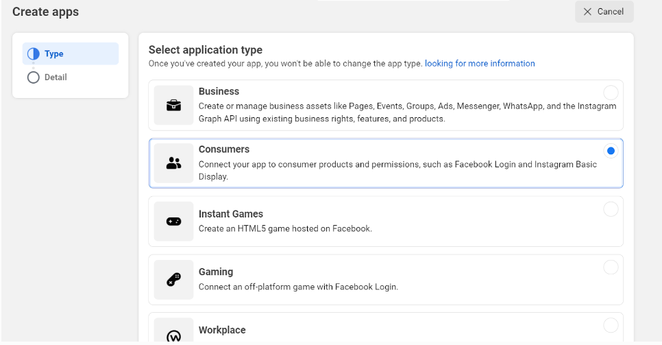 Choose the type of app you want to create