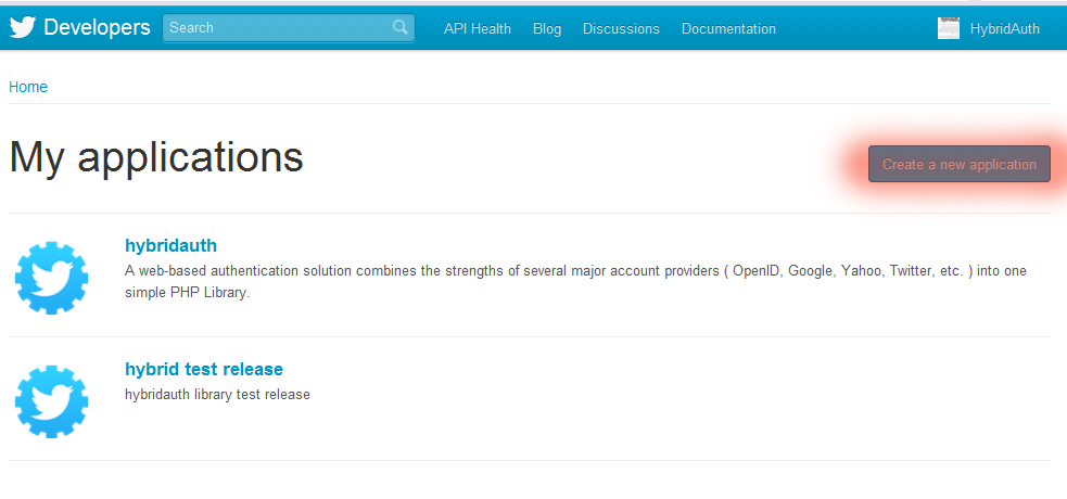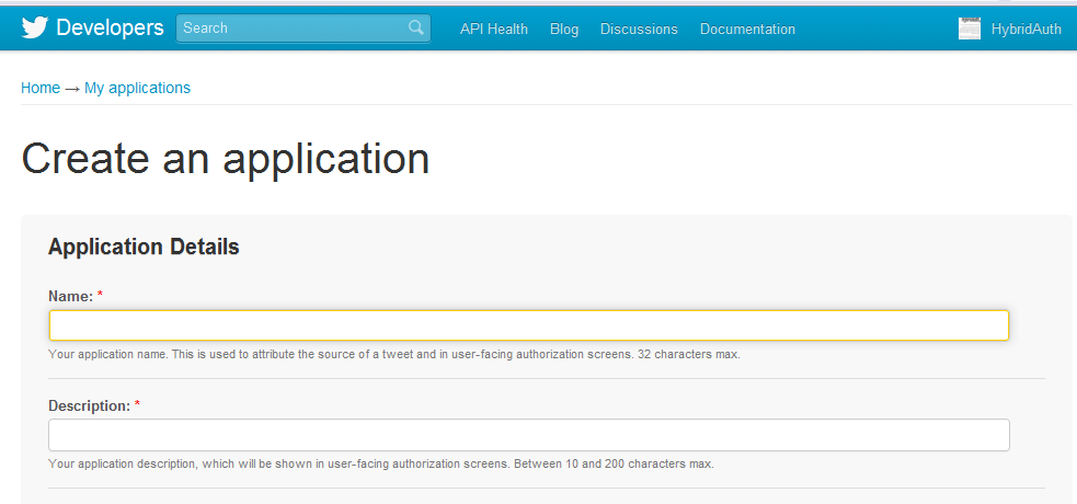 To enable authentication with this provider and to register a new Twitter API Application, follow the steps: