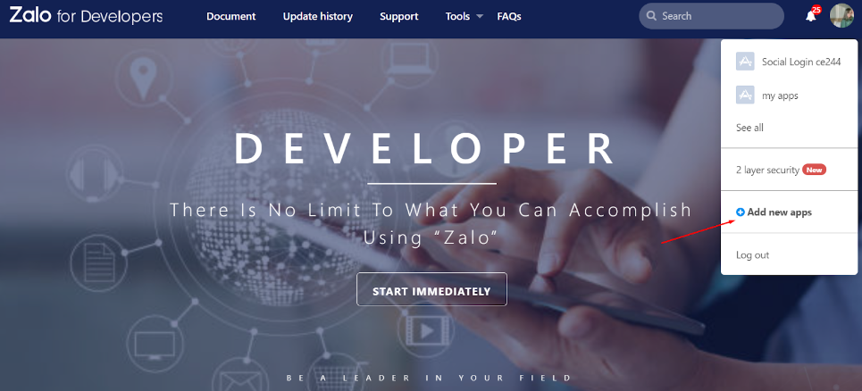 First go to Zalo to create an app. https://developers.zalo.me/apps
