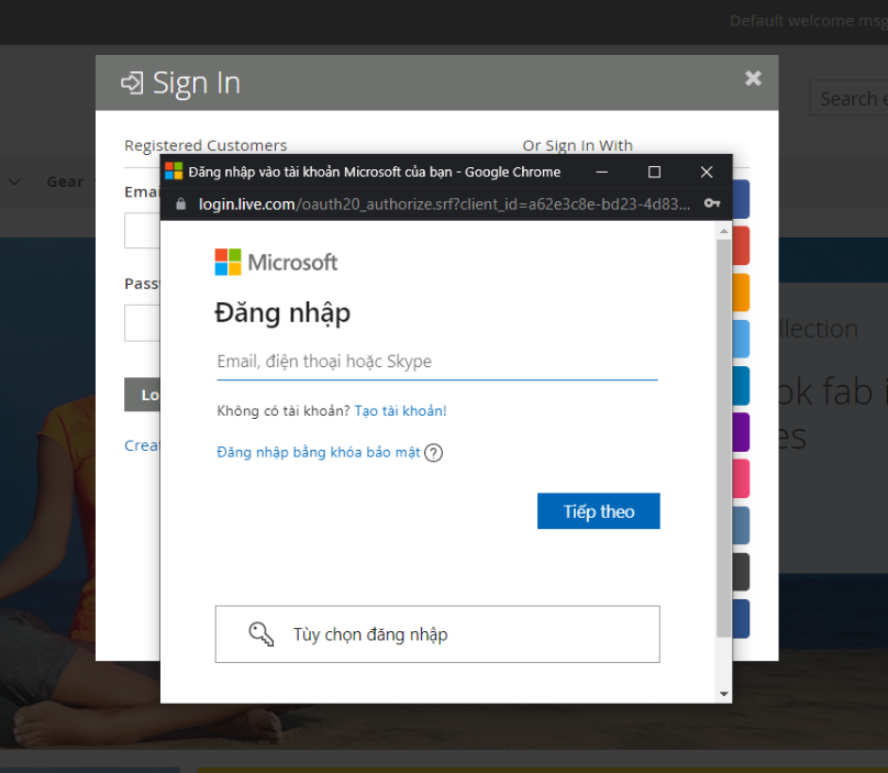 Microsoft Live Login dialog will be shown after clicking on Sign in with Live button.