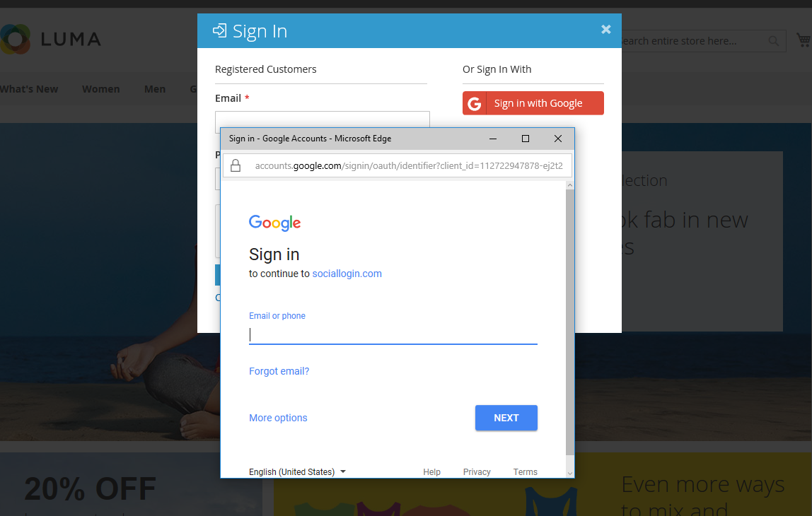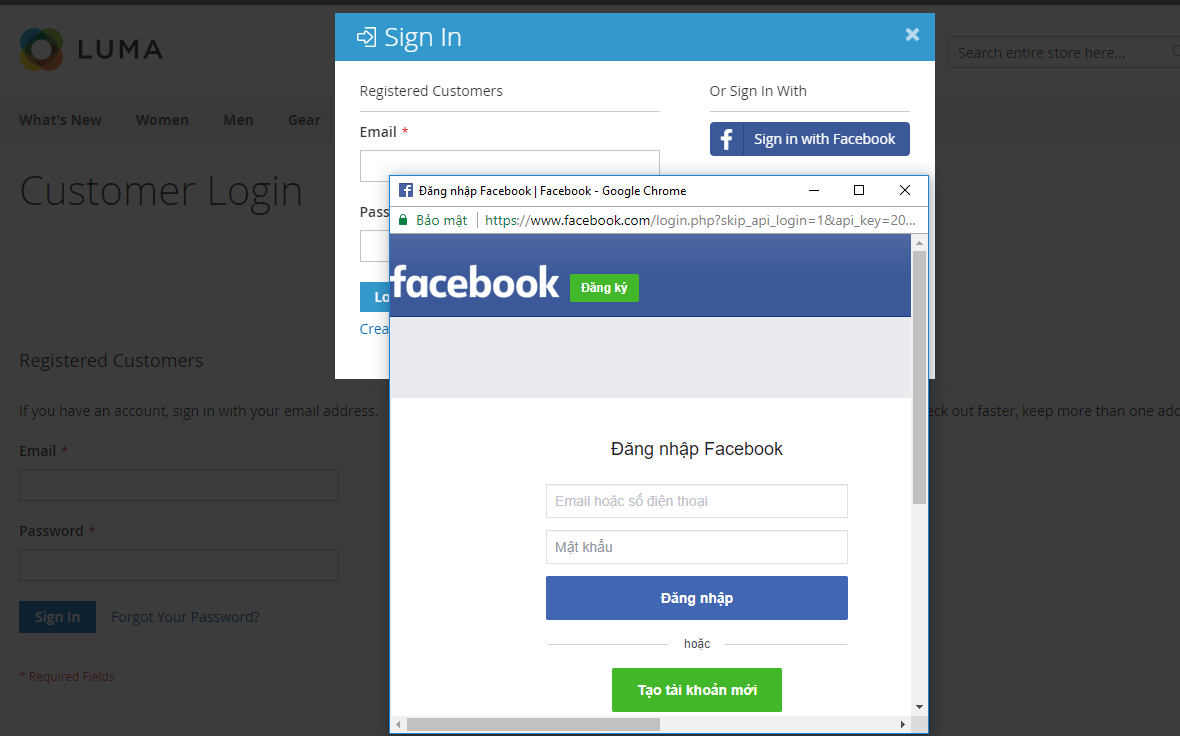 - Choose None, popup not show and only show social login buttons at Customer Login page, Create New Account, and Forgot Passwords, Customers Authentication Popup.