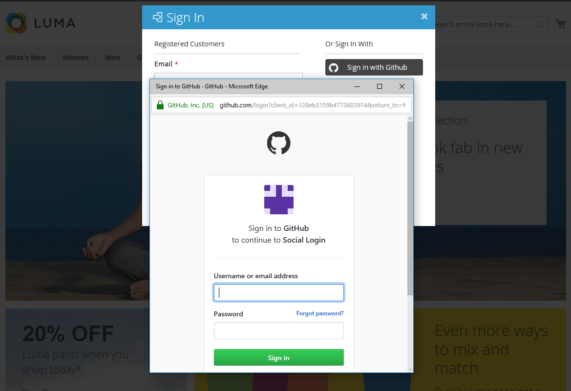 Github Login dialog will be shown after clicking on Sign in with Github button.