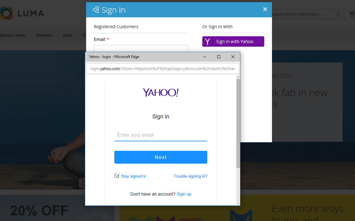 Yahoo Login dialog will be shown after clicking on Sign in with Yahoo button.