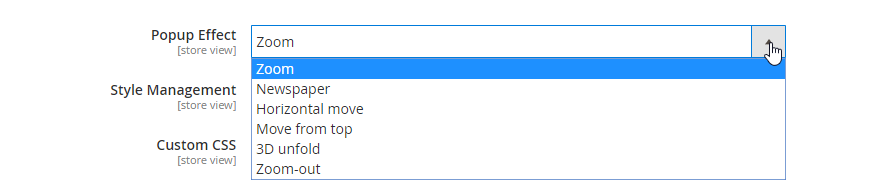 - In the Style Management field: Admin can choose one of the display colors for popup. Style Management = Custom means Admin can select custom the color swatch.