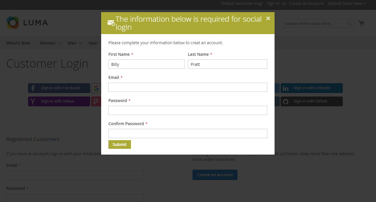 - Select If social account does not provide E-mail means that only show email confirmation popup when customers register account via the social networks that do not require real email such as Yahoo, Github, etc.