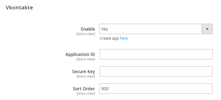 Go to Store > Settings > Configuration > Mageplaza Extensions > Social Login > Vkontakte.