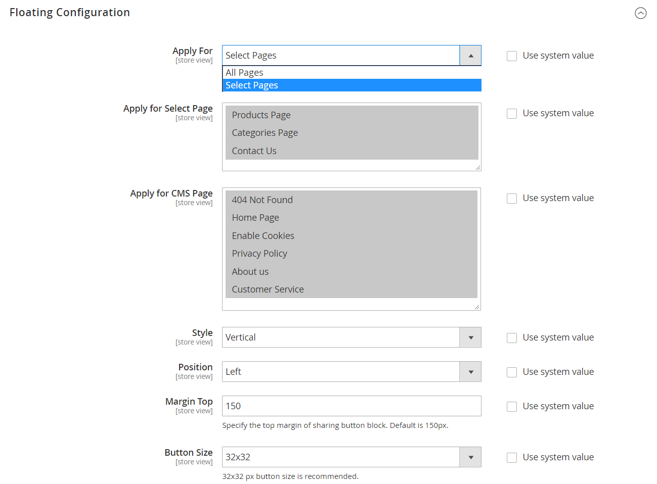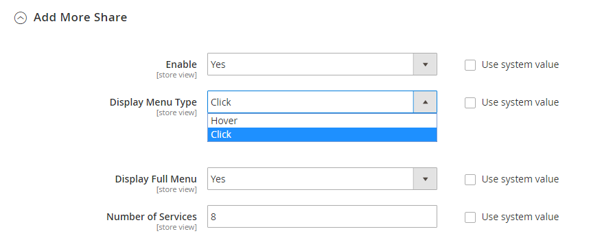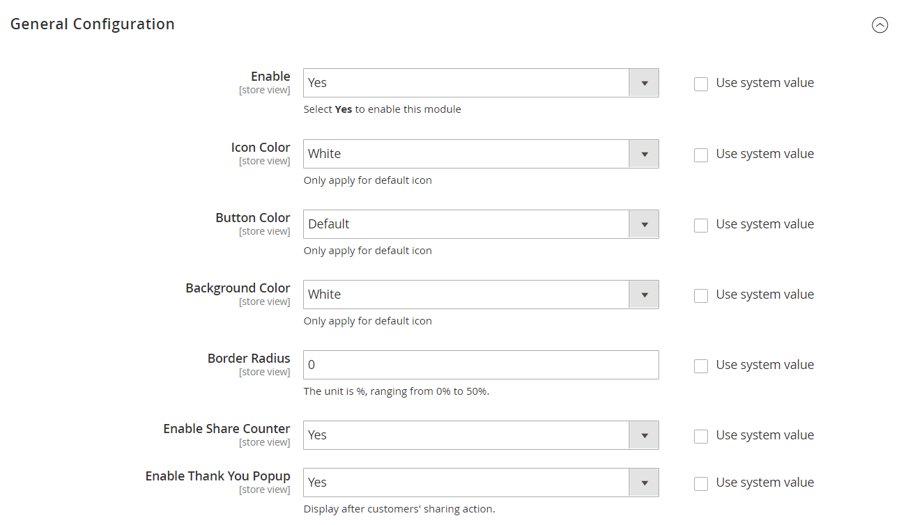 Login to the Magento Admin, choose Store > Configuration > Mageplaza > Social Share.