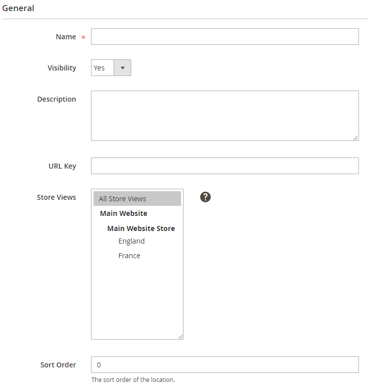Description: Enter the description for the pageDefault website: Enter the default website for the store. With stores that have multiple branches, admins can quickly synchronize the website with this itemDefault Store Image: Showing the default image on FrontendURL Key:- Enter the link to access the page
