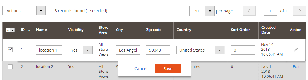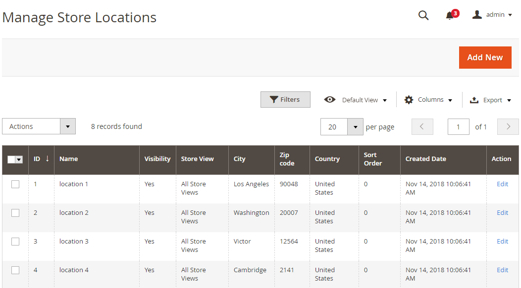 | 2 | Boost customer confidence | Provide complete, clear and transparent information about the store using Google Maps from address, contact information (phone number, email address, Twitter), website, business hours, holidays, etc. In addition, the module also provides customers with real-life images of the store. All actual store locations are also displayed on the Store Location Management Grid, allowing administrators to quickly edit or modify store details. |