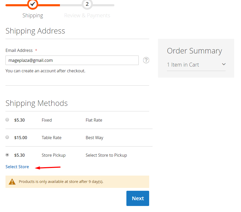Mageplaza Store Pickupβ