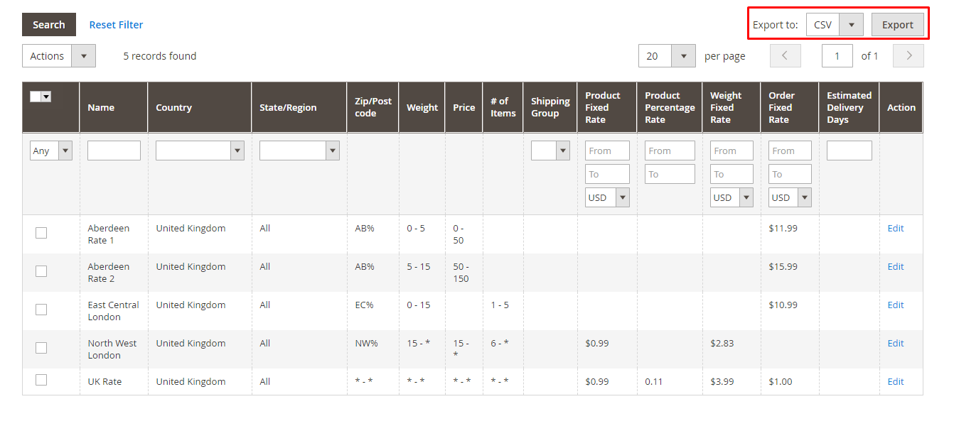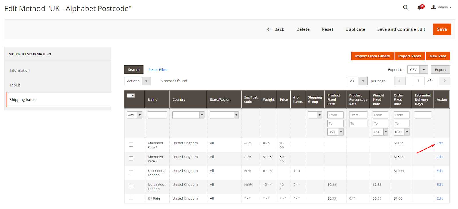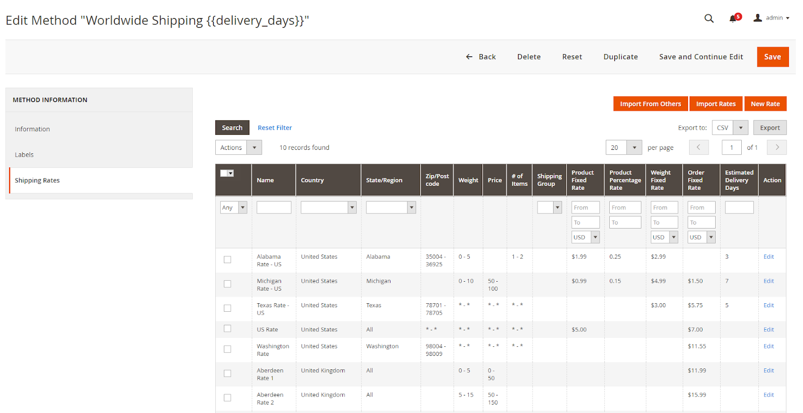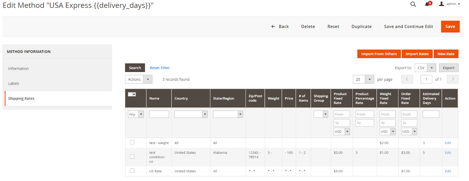 In addition, you can export the rate of any shipping method to import the shipping method you want.