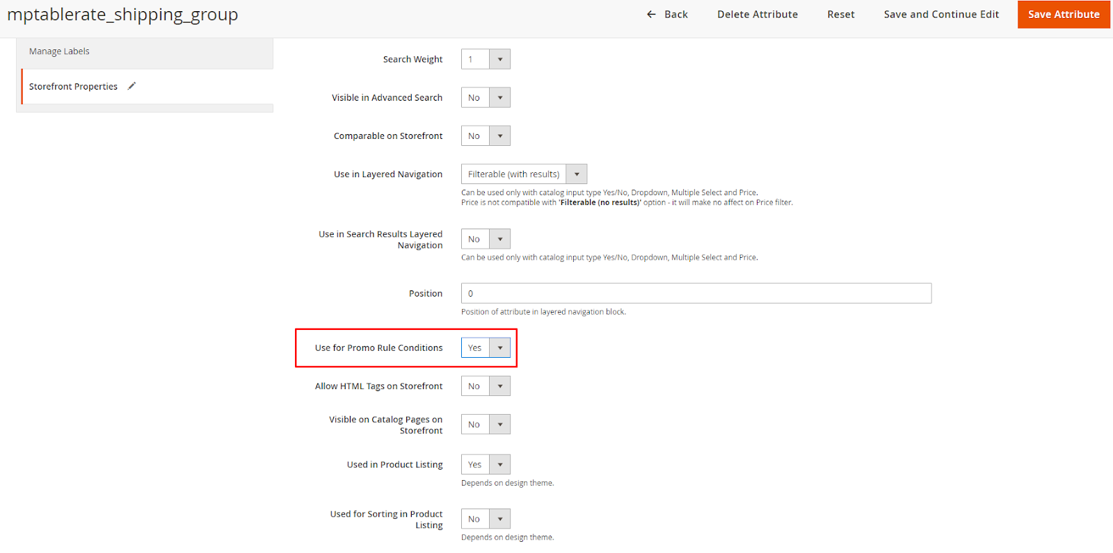 To set the Freeship for products under the Shipping Group, make sure the setting of the mptablerate_shipping_group attribute has enabled the Use for Promo Rule Conditions feature.