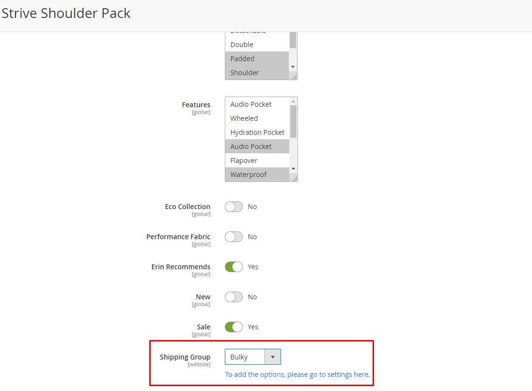 - Shipping Group: Products can be assigned a certain shipping group to classify goods when shipping. For each type of goods can be assigned a certain shipping rate. Instructions for setting up the Shipping Group for the product will be detailed below.