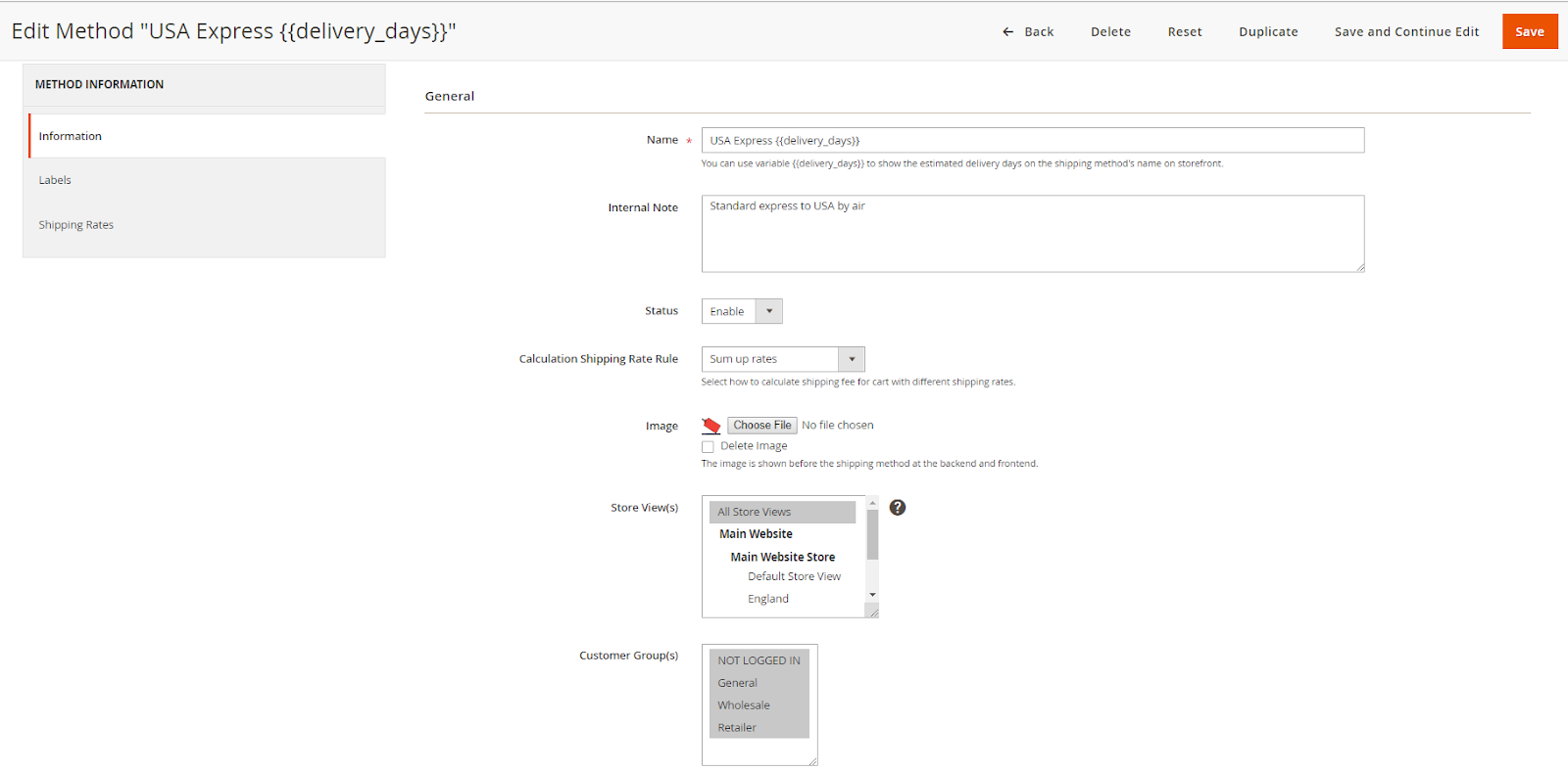 {{delivery_days}}in the shipping method name.After filling all the above information as desired, click Save to save the shipping rate you have just set.