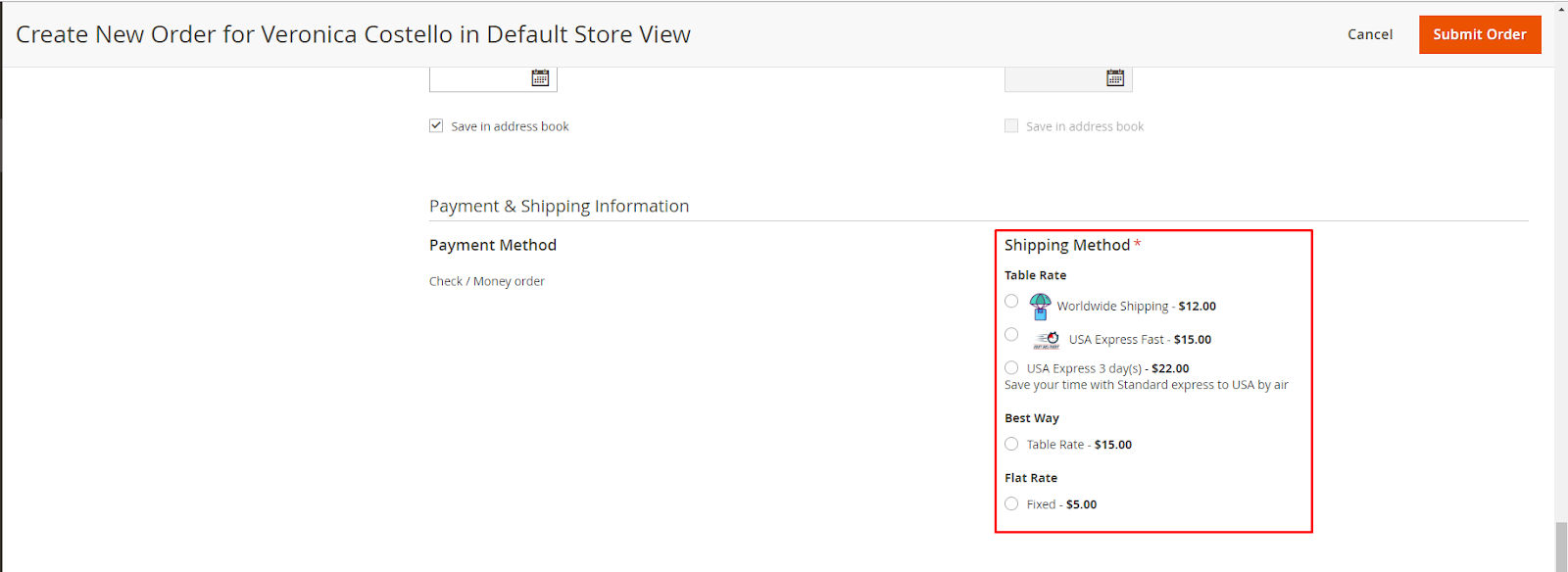 - Calculation Shipping Rate Rule: Choose how to calculate the shipping fee for the cart if it satisfies multiple method rates at once. Extension supports 3 calculation methods: