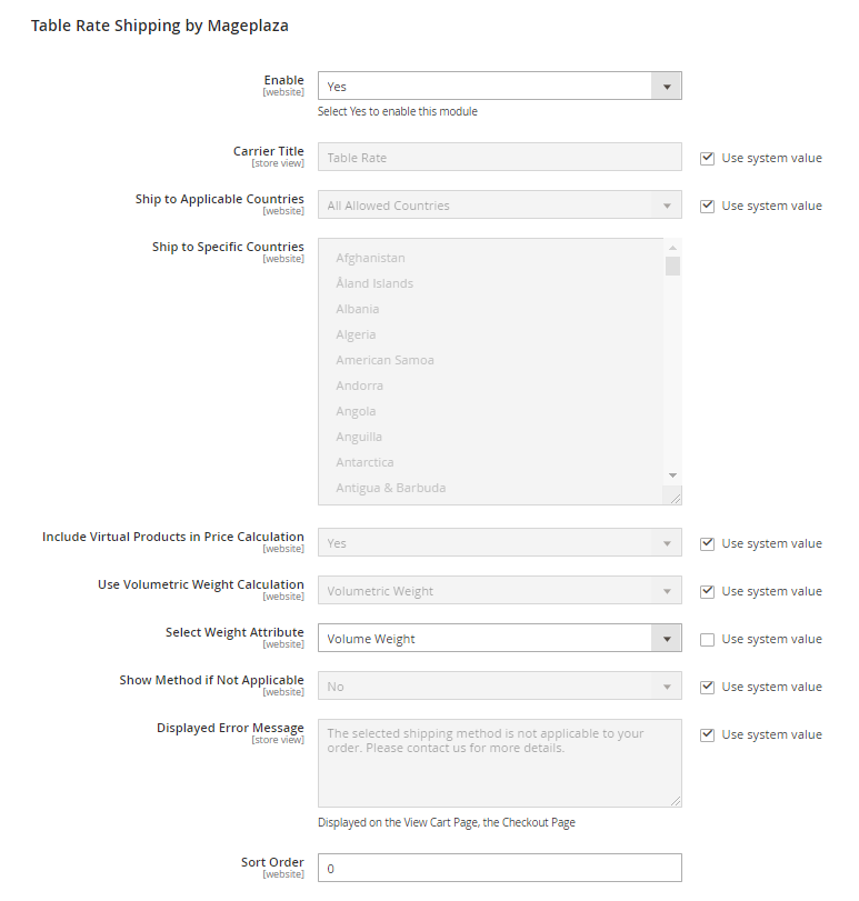 - Carrier Title: Enter the title that you want to appear for the shipping rate table at checkout. The default title is Table Rate.